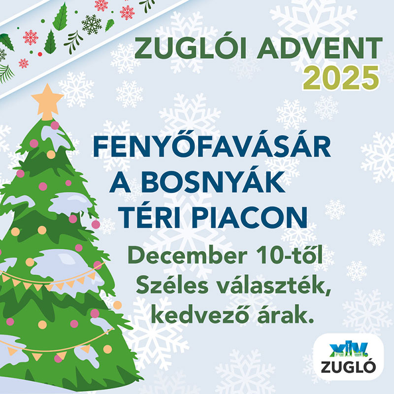 Hagyományos karácsonyi fenyőfavásár: 2025. december 10. 7:00 – 2024. december 24. 12:00-ig a Lőcsei utca...
