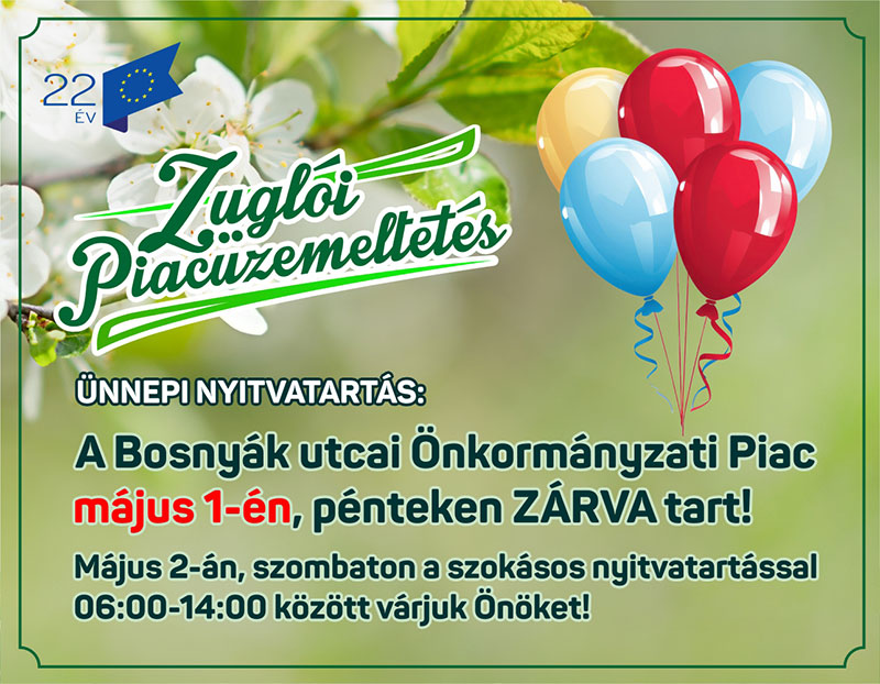 ÜNNEPI NYITVATARTÁS: A Bosnyák utcai Önkormányzati Piac május 1-én, pénteken ZÁRVA tart! Május 2-án, szombaton...