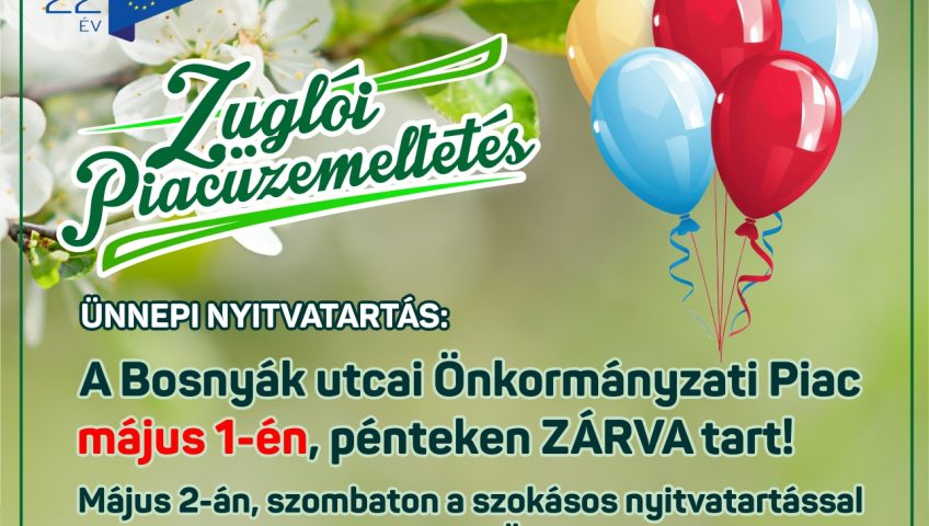 A Bosnyák utcai Önkormányzati Piac május 1-én, pénteken ZÁRVA tart!